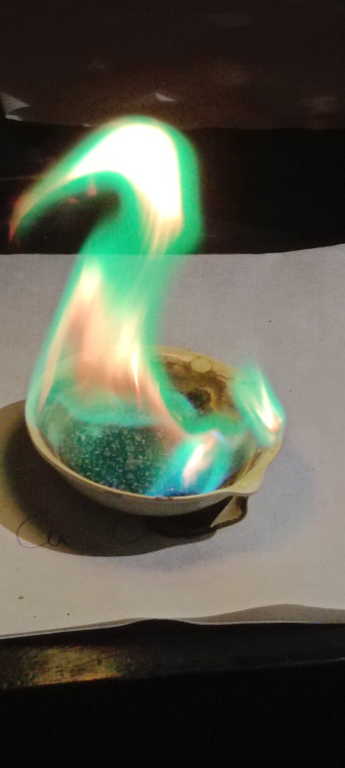 Daniel describe la imagen como “Color verde- azulado de la llama de cloruro de cobre”