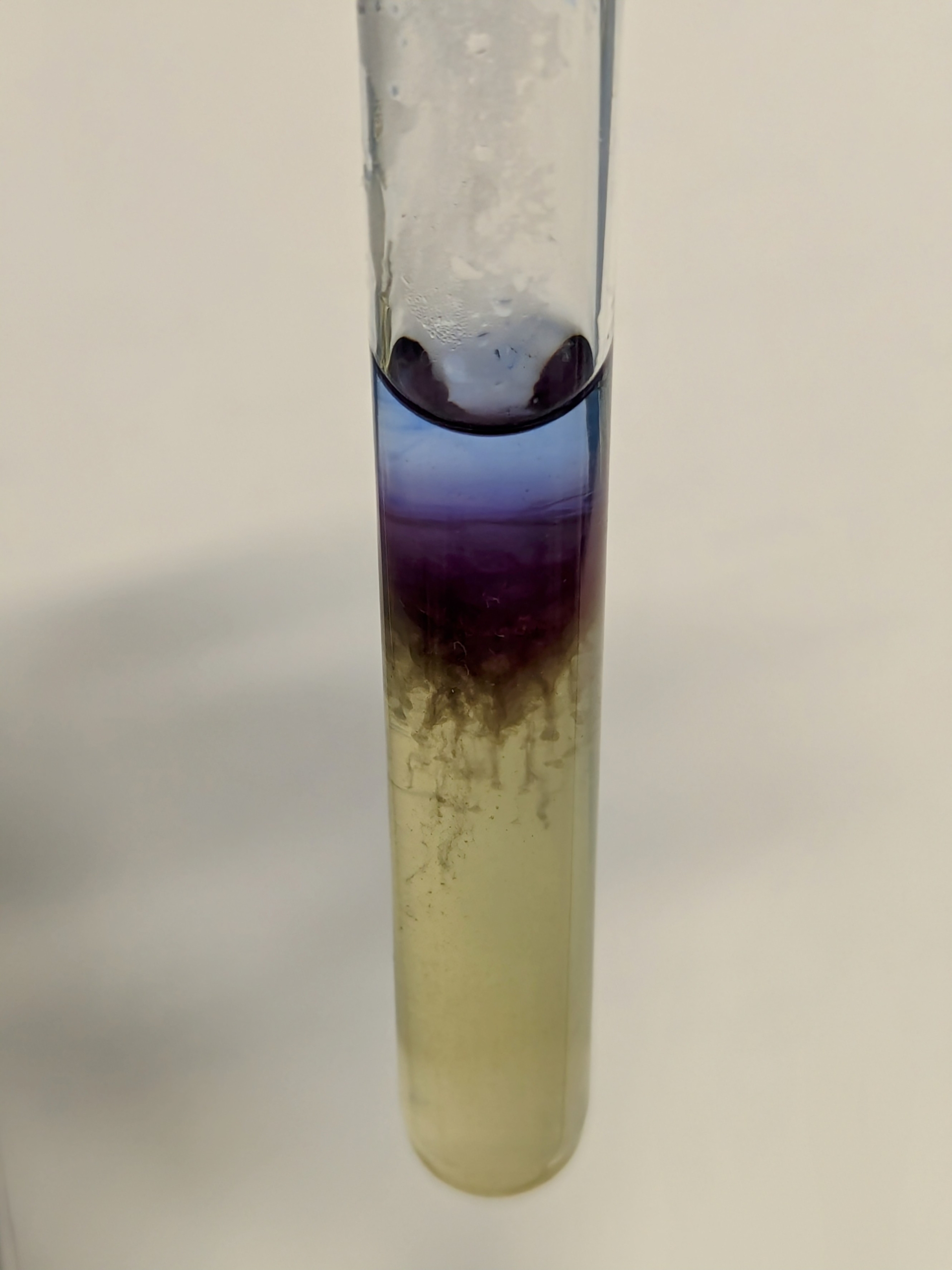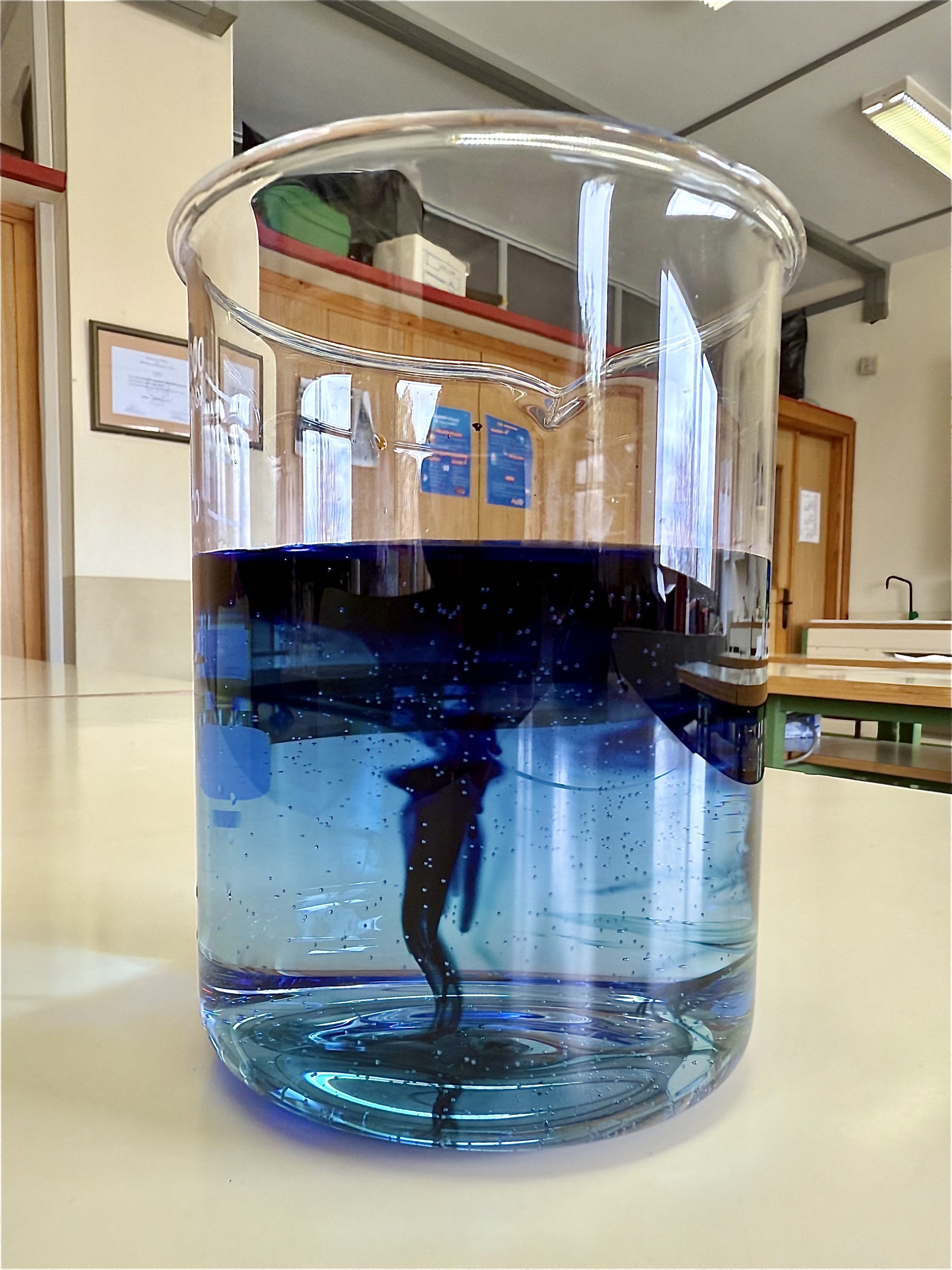 Paula describe la imagen como “Primeras gotas de etilendiamina sobre una disolución de cloruro de cobre (I) y cloruro de sodio”